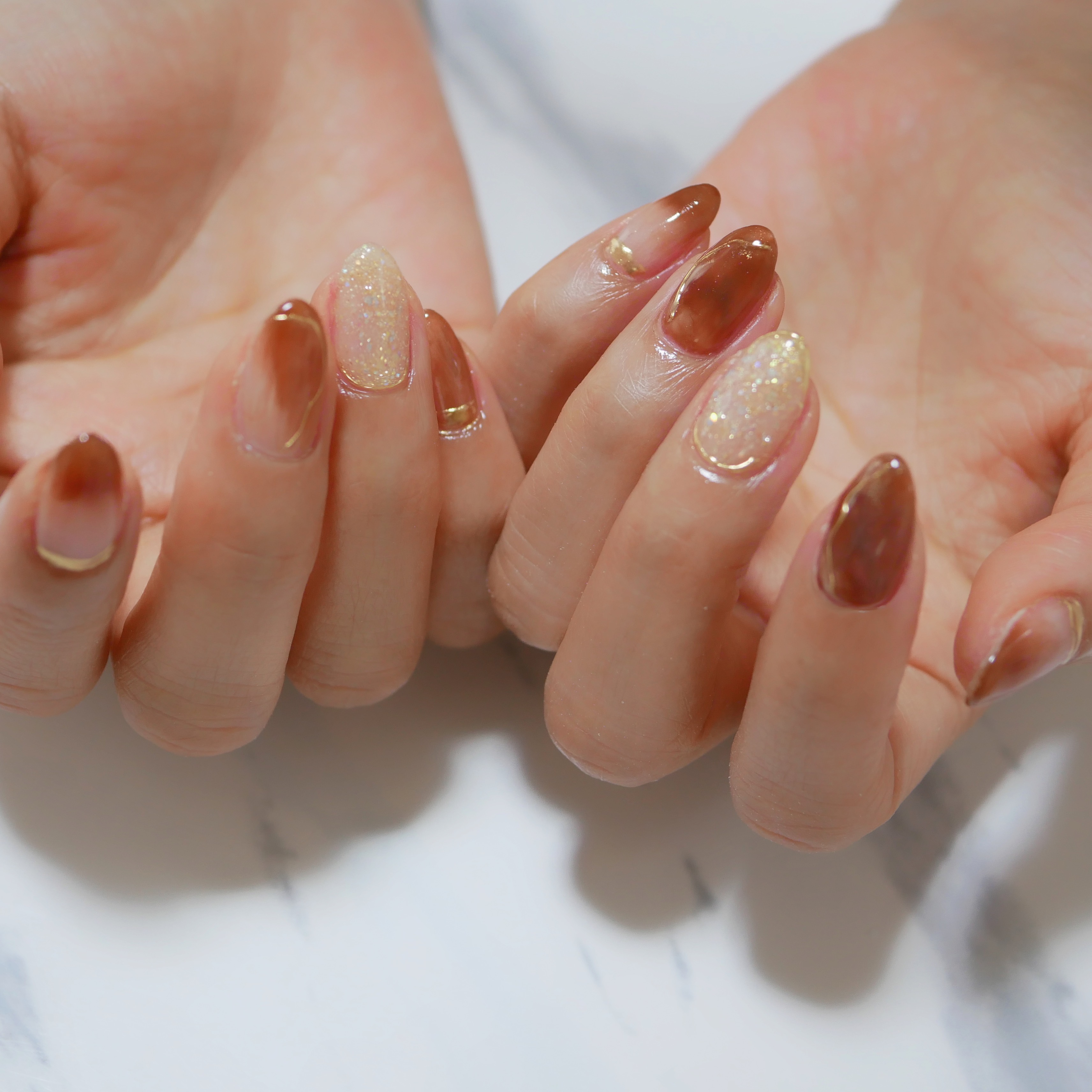 もう片手の茶系のフラワーアートも上品で素敵でした