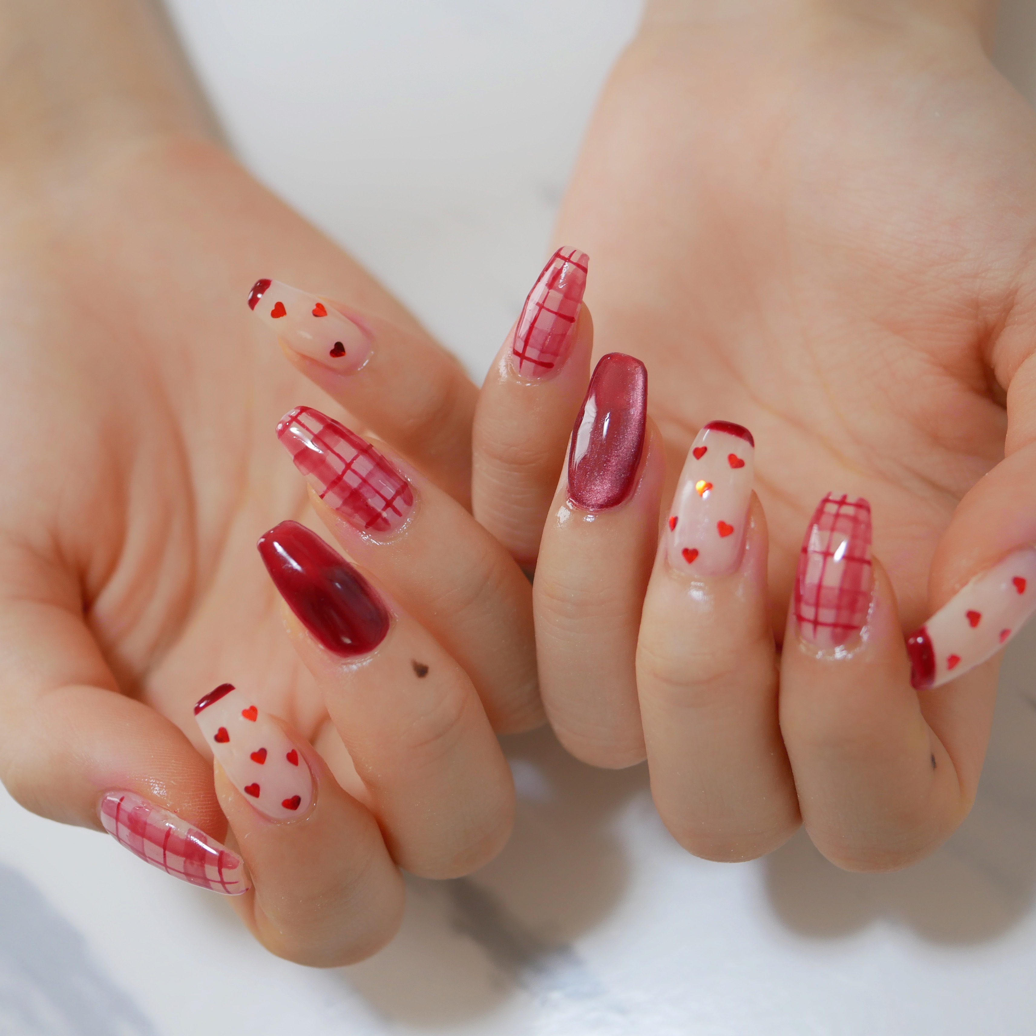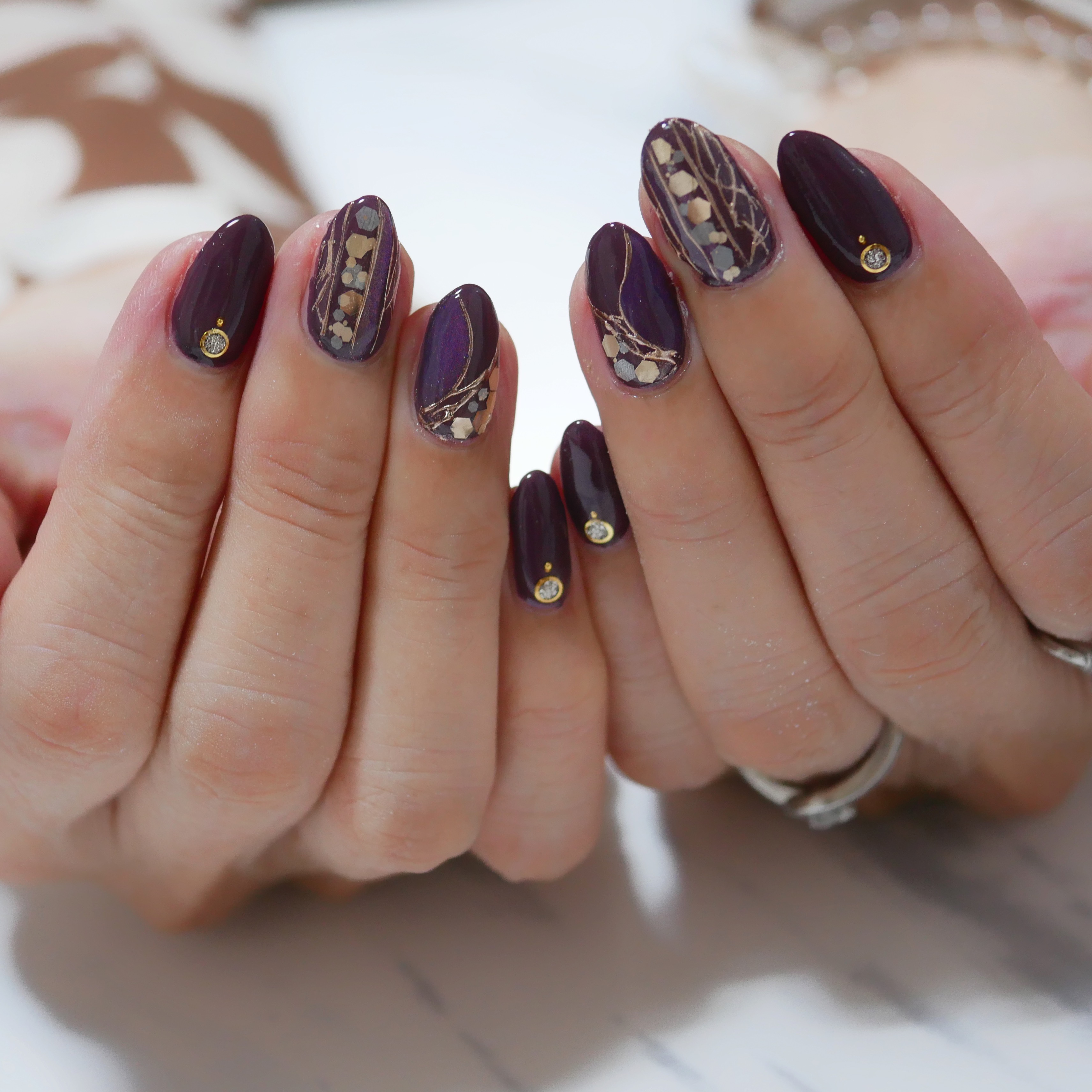 深めのカラーにキラキラがめちゃ大人~なネイルです![]()