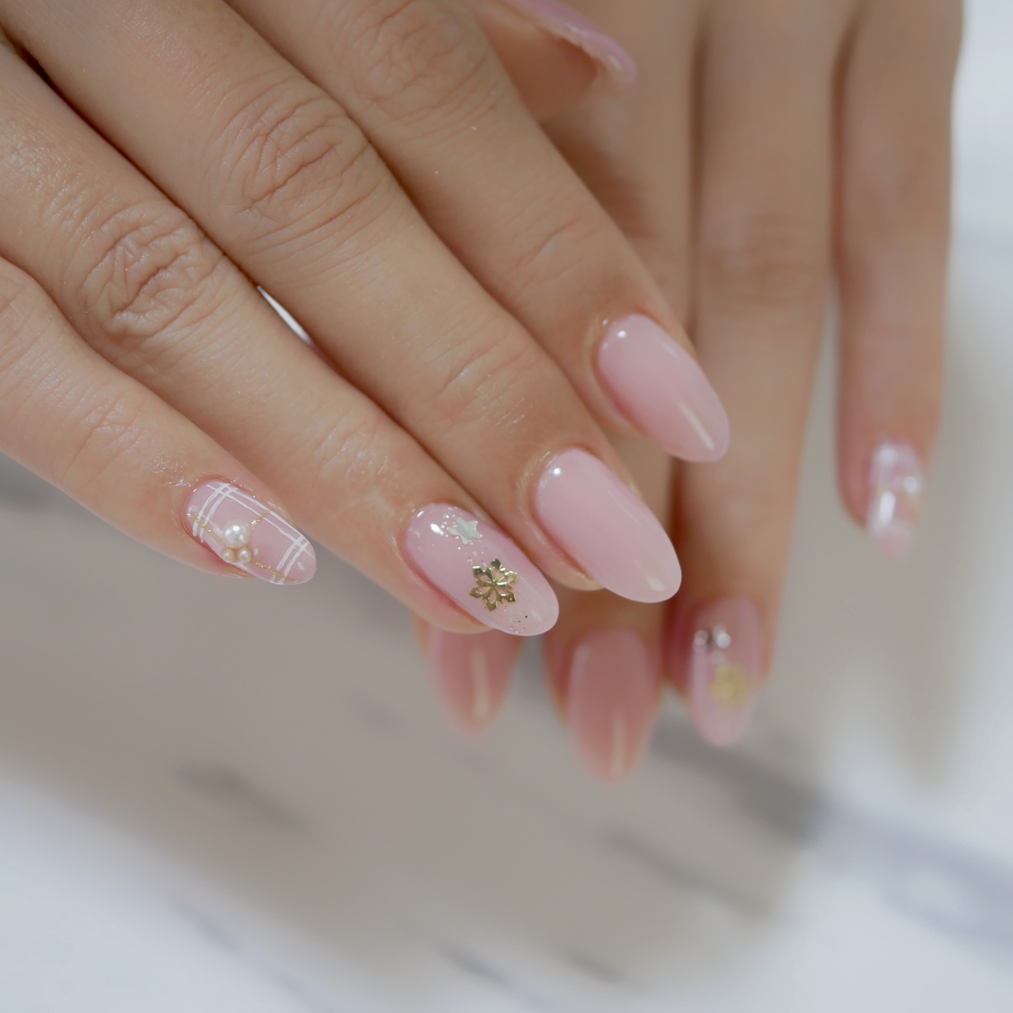 アシメで片手はシンプルにまとめてます![]()