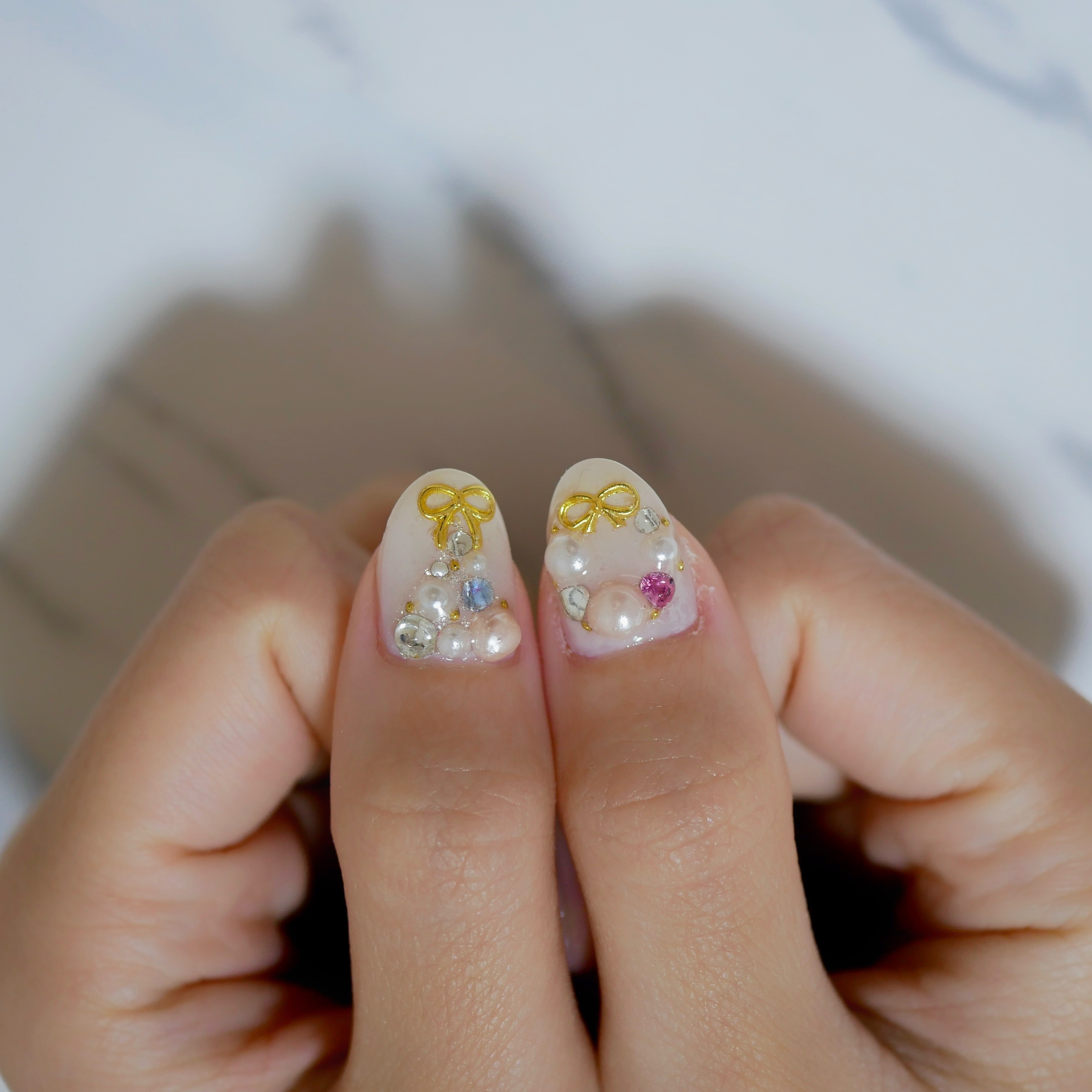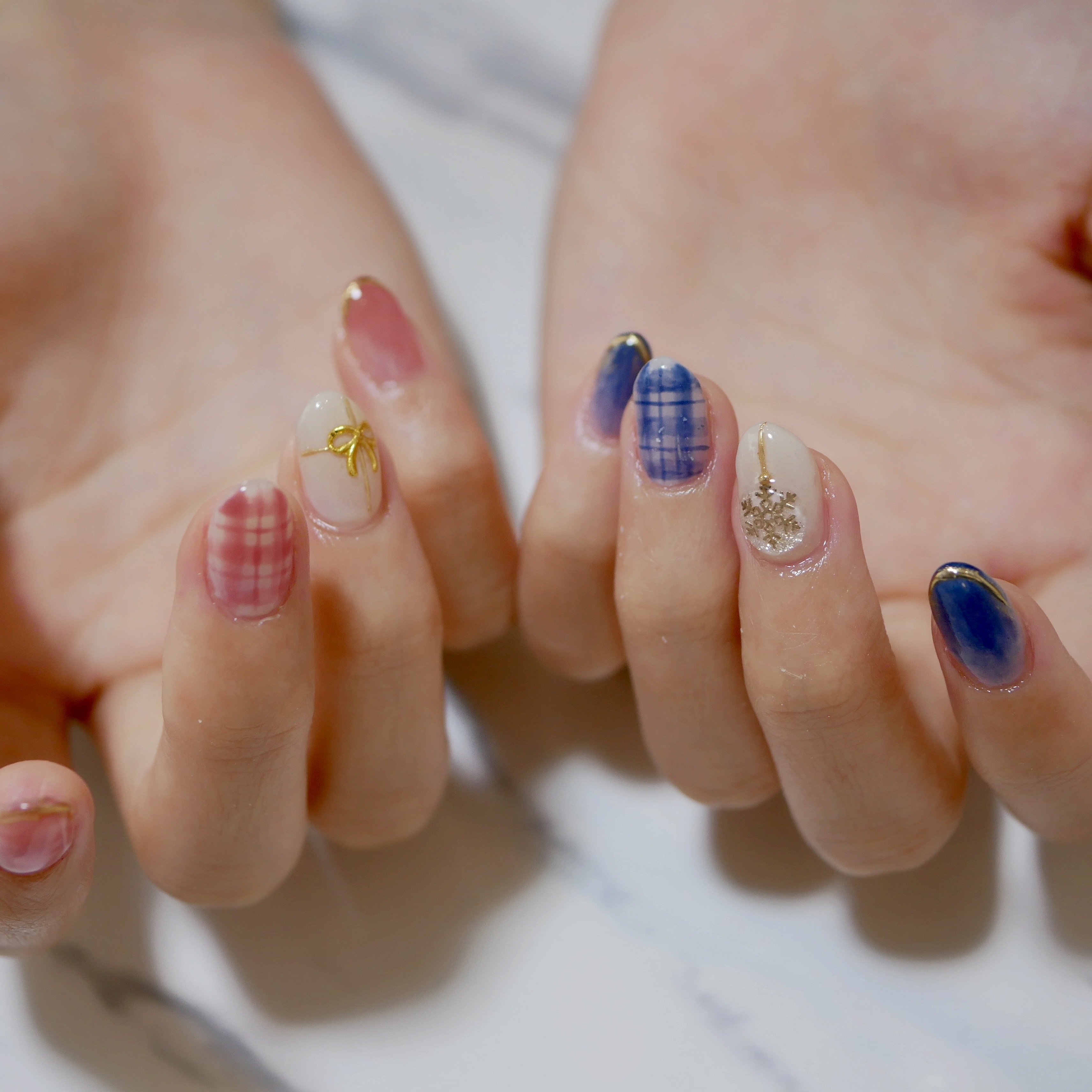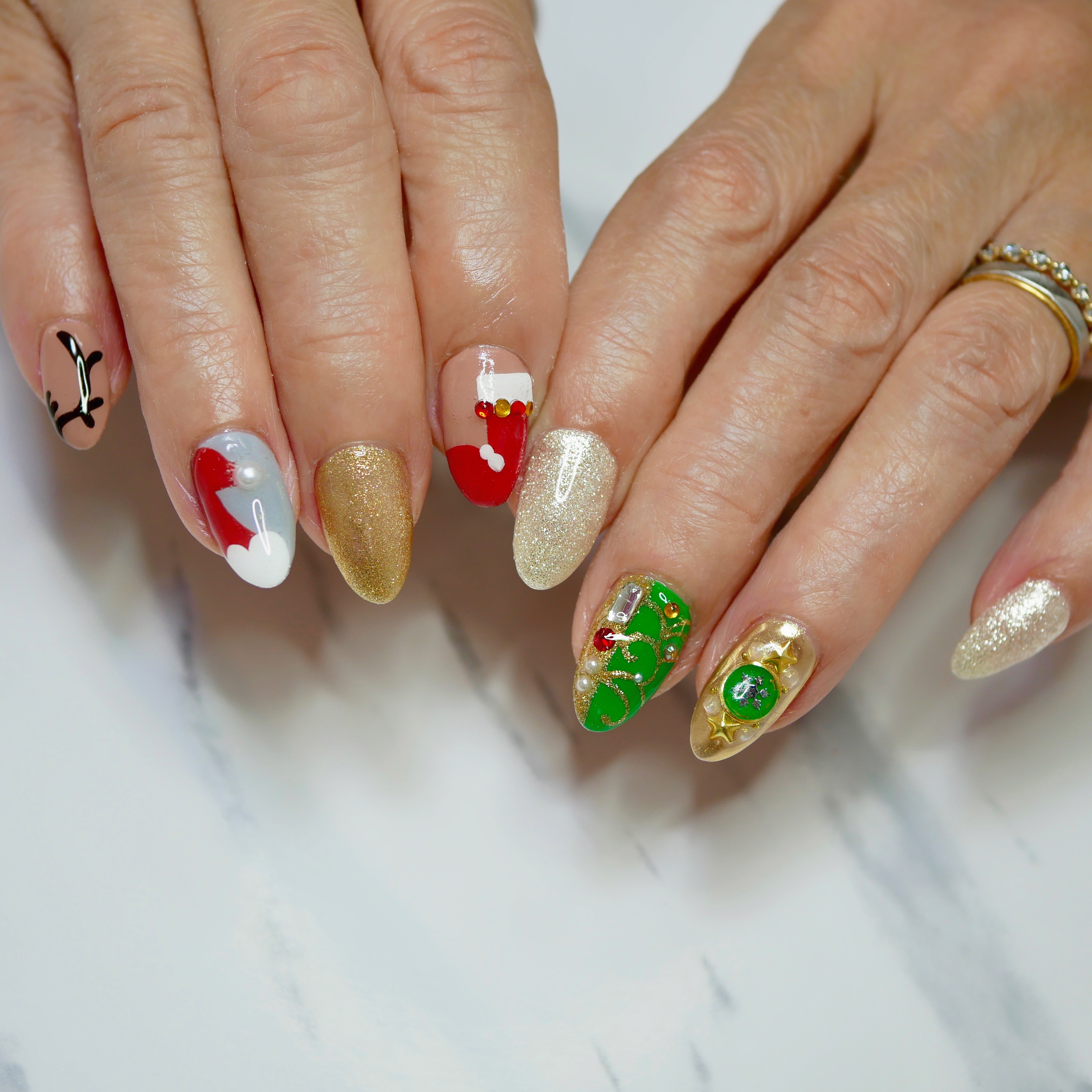 シンプルながらにキラキラとプレゼントでクリスマスネイルになりました