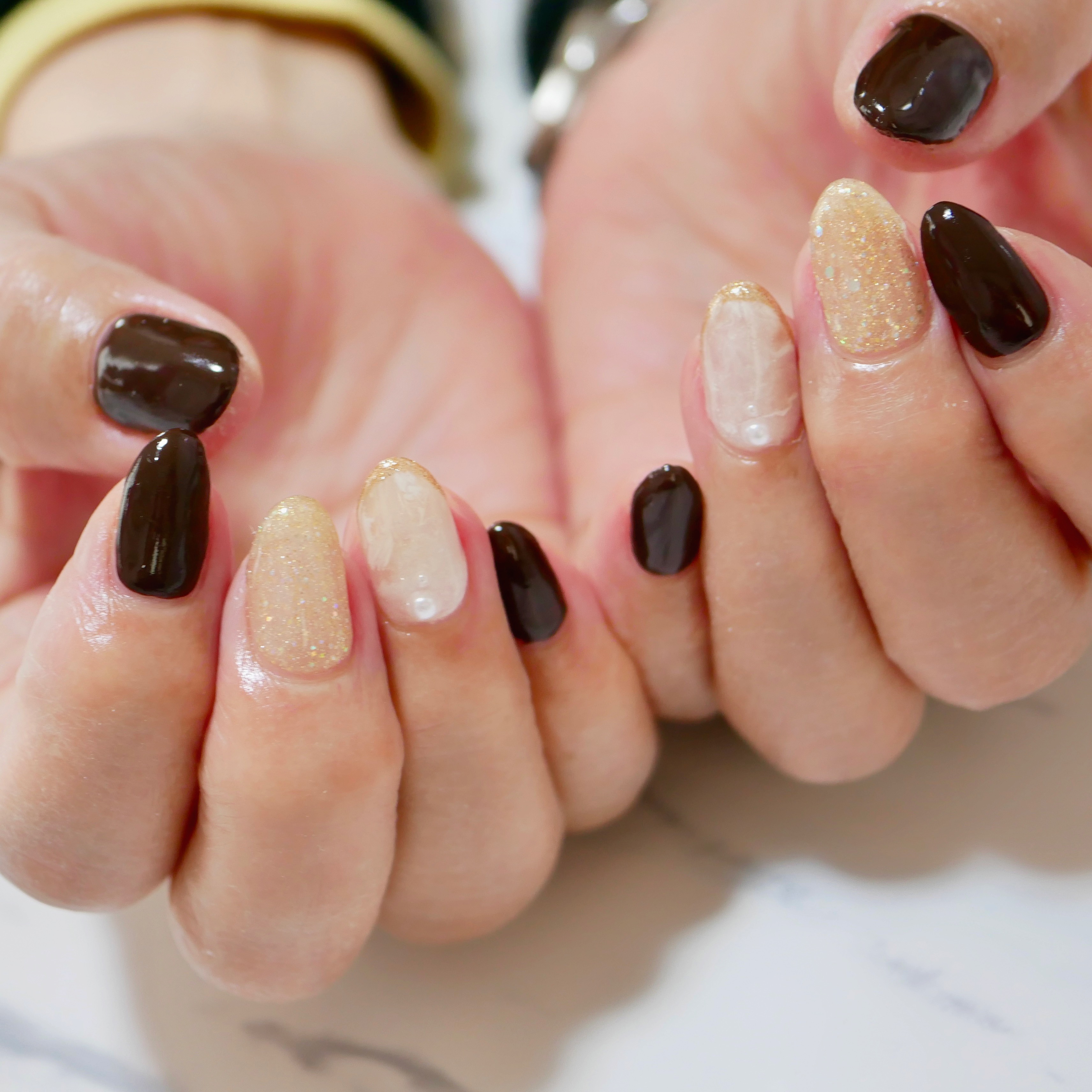 大人キラキラネイルにされました![]()