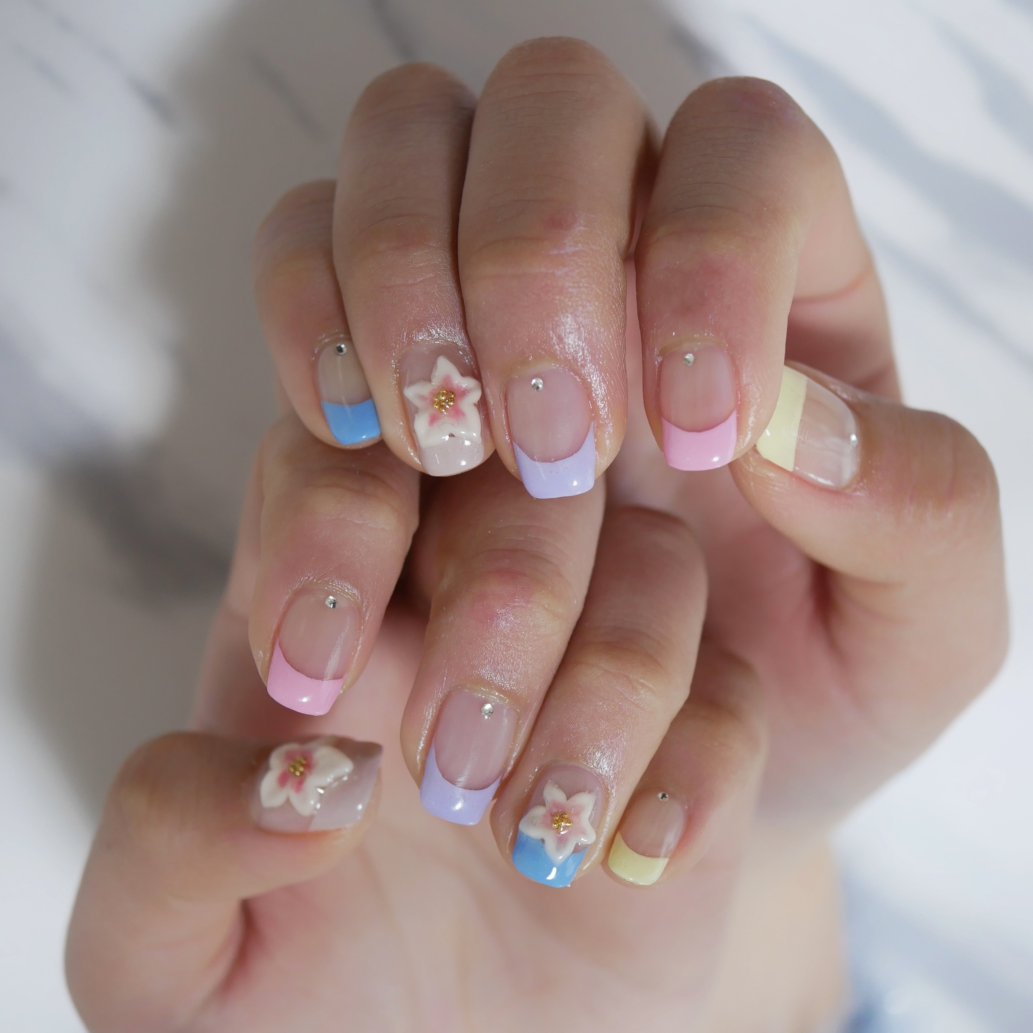 どちらも春らしいカラーでハンドにはお花ものせました♪