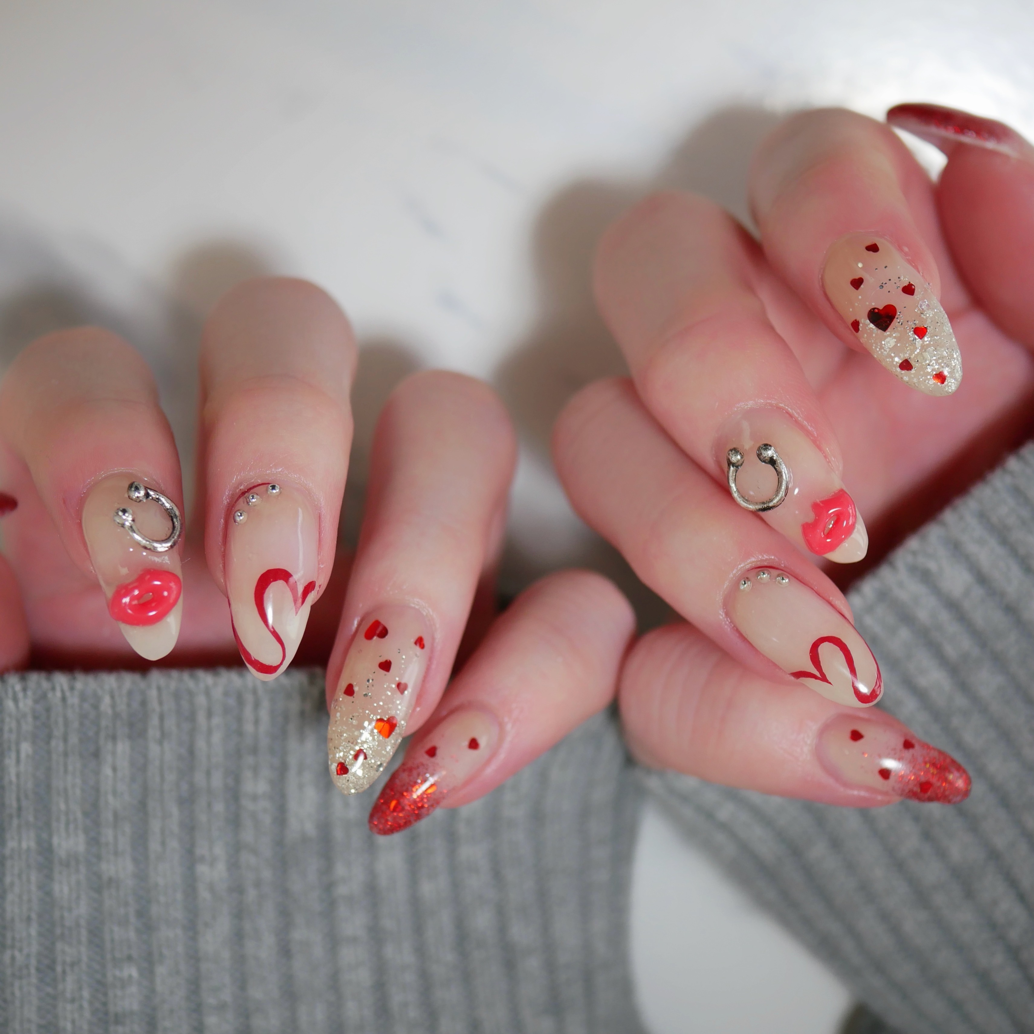 もうすぐバレンタインだからネイルもめっちゃバレンタインアートがでます![]()